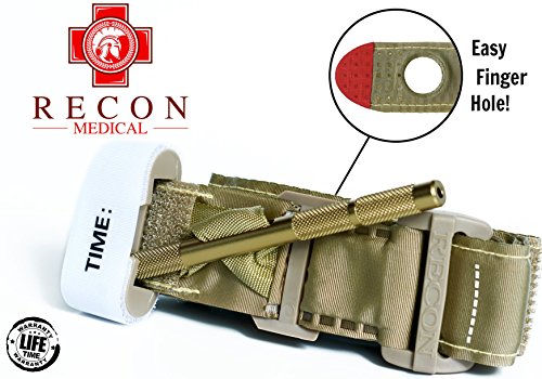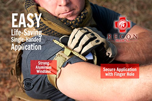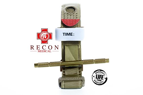 Tourniquet - (TAN) Recon Medical Gen 3 Mil-Spec Kevlar Metal Windlass Aluminum First Aid Tactical Swat Medic Pre-Hospital Life Saving Hemorrhage Control Registration Card 1 Pack