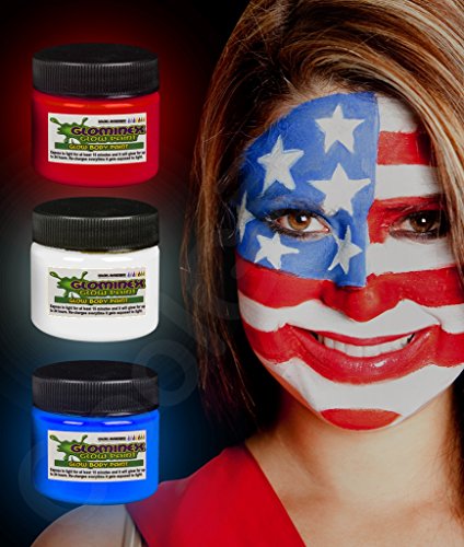 Glominex AQ702 Glow Body Paint 1oz Red White Blue 3ct