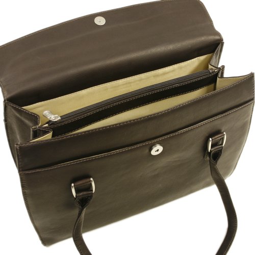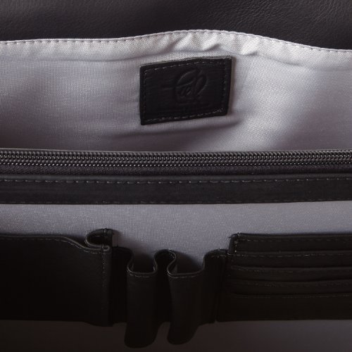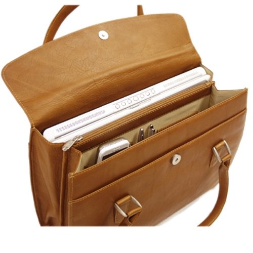 Studio : Piel Leather Publisher : Piel Leather Binding : Apparel Product Description Top flap magnetic opens to two main compartments divided by a large zip-pocket. Back compartment padded for a laptop (13 inch x 10 inch x 2.5 inch). Front compartment features a full organizer and large zip-pocket. Front open pocket, large rear zip-pocket, and double handles. 0