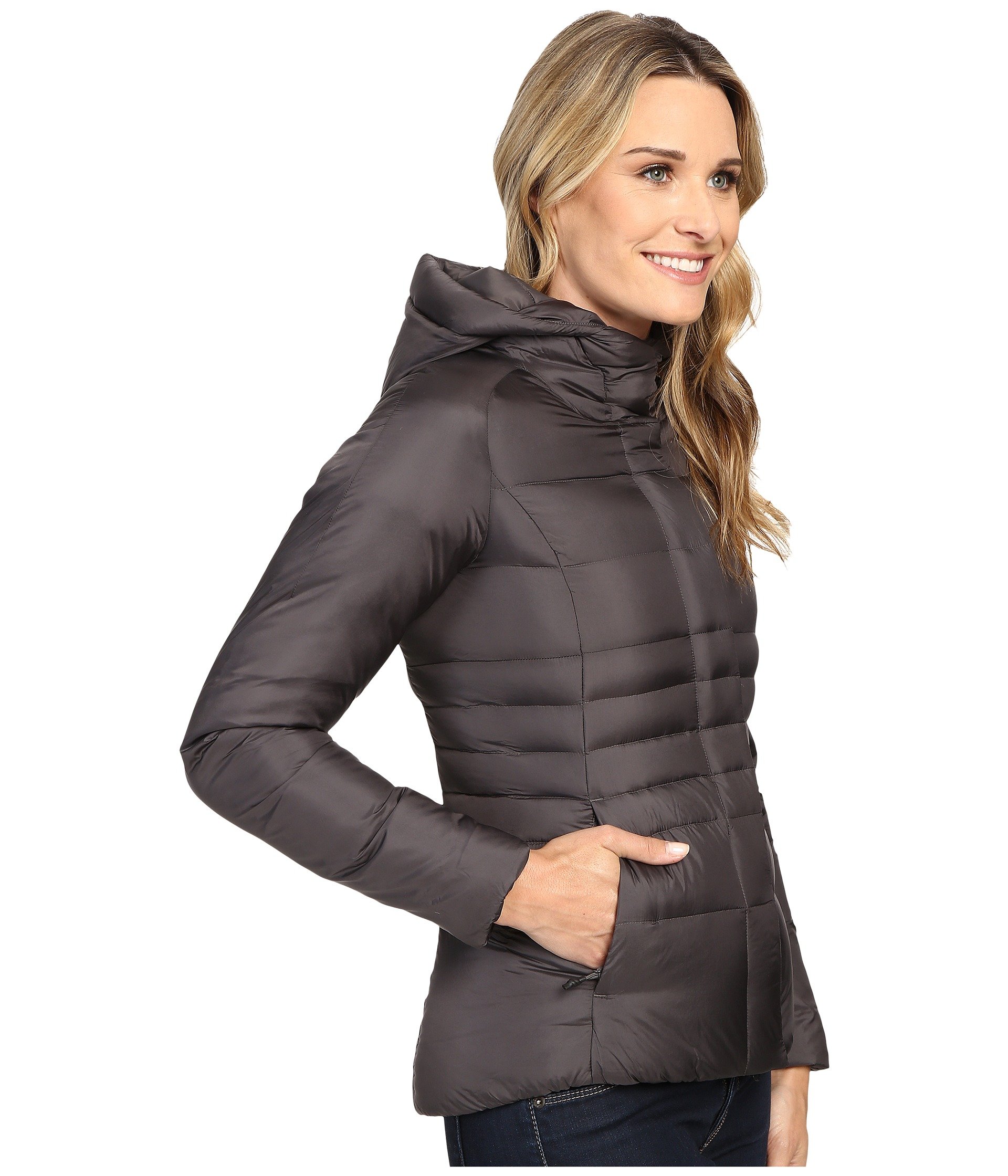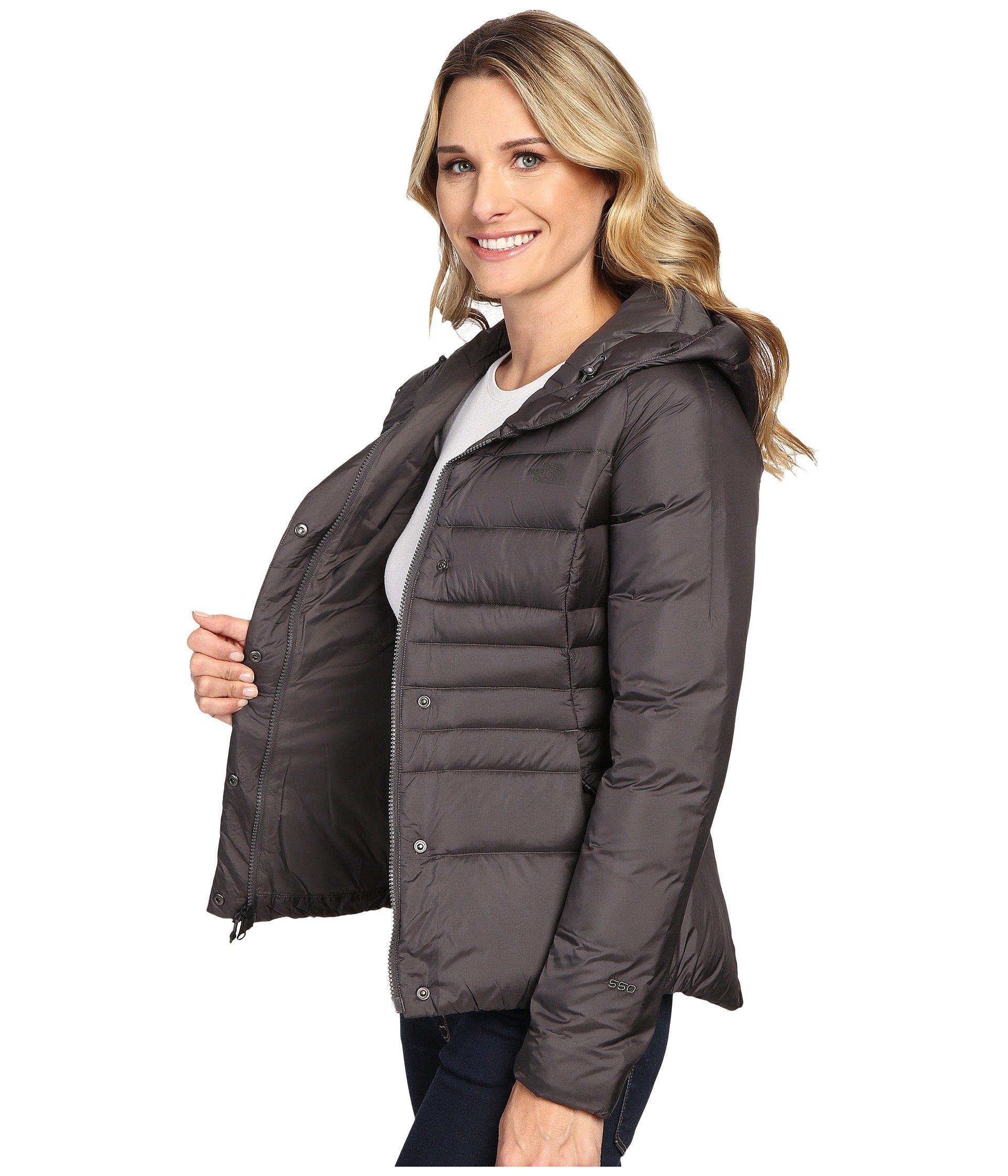 | Product Information SKU: #8698860Please note that this style is either discontinued and/or from a previous season.Zip into this stylish and warm TNF? jacket on your next adventure out the door!Sleek nylon shell features a Durable Water-Resistant (DWR) coating to shed light precipitation and keep you dry.High-loft, 550-fill goose down insulation.Brushed inner collar prevents chafing.Two-way front zip with exterior button-close storm flap.Two zip hand pockets.Cinchcord hem.Oversized insulated hood is attached.Shell: 100% satin nylon.Lining: 100% nylon.Insulation: 550-fill-power goose down.Machine wash warm and tumble dry low.Product measurements were taken using size XS. Please note that measurements may vary by size.Measurements: Length: 26 in |