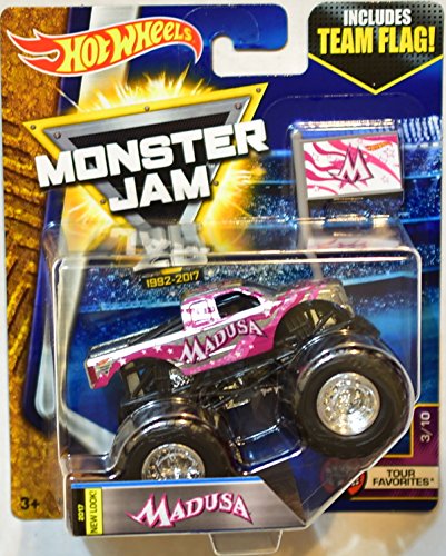 -. Feature : Hot Wheels Monster Jam Madusa Truck / Includes Team Flag / 1:64 Scale / Tour Favorites 3/10