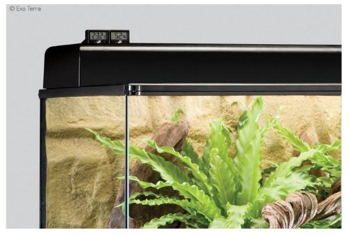 Feature : Provides accurate temperature and humidity indication / Single-button operation / Combined remote sensor for temperature and humidity / Minimum/maximum memory setting for humidity and temperature levels / Fits the Exo Terra Compact Top and Dual Top Canopy