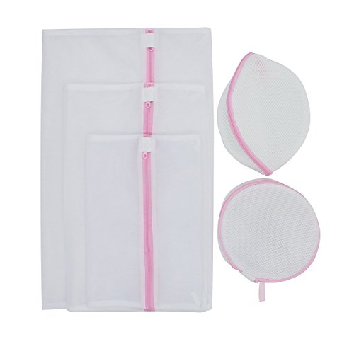 Zippered Laundry Mesh Bags Wash Bags for Clothes, Underwear, Delicates, Bras, Socks | Set of 5 (1 Large, 1 Medium, 1 Small and 2 Bra Bag)