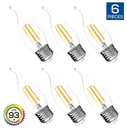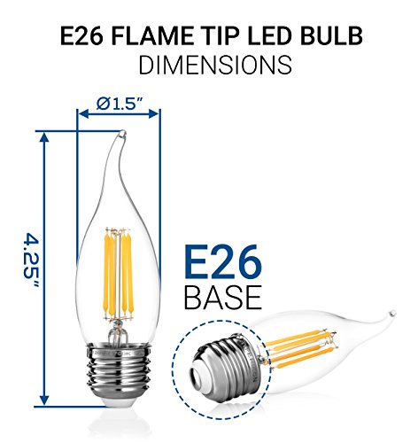 Hyperikon LED Edison Flame Tip Filament B11 Candle, 4W (40W Equivalent), Medium Base (E26), CRI 90+, Dimmable, 2700K (Warm White)