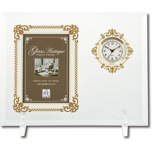 | 豪華なアンティーク調のフレームをプリントしたフォトフレームに時計をセットしました。 |