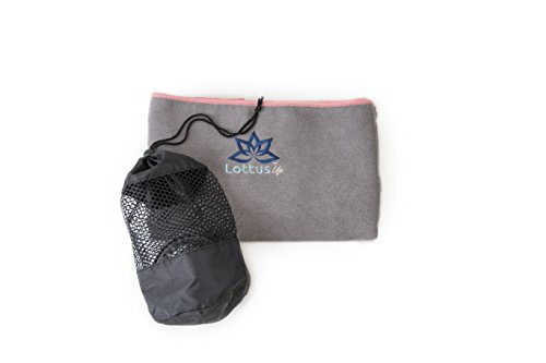 LOTTUS LIFE Yoga Towel - 72"x24" - Premium Microfiber, Quick Dry, Eco-Friendly, Protect Your Yoga Mat and Improve Your Grip - Perfect for Hot Yoga, Gym, Beach - Non-Slip - Ultra Absorbent - Carry Bag