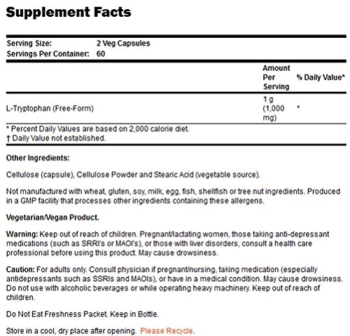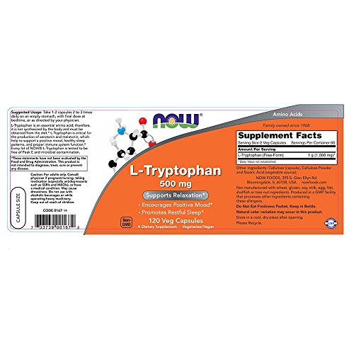 NOW L-Tryptophan 500 mg,120 Veg Capsules