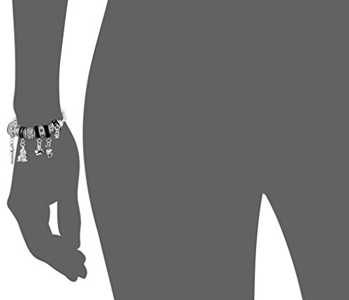 -. Feature : Bracelet featuring whimsical array of black and silver-tone beads accented with cat-theme charms / Snake chain with heart-accented lobster-claw clasp / Imported
