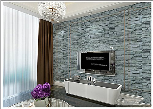 7Buy Just Peel and Stick 24"X195" Modern Minimalist Faux Brick PVC Stone Wallpaper Waterproof Removable Wall Decor Sticker (light cyan)