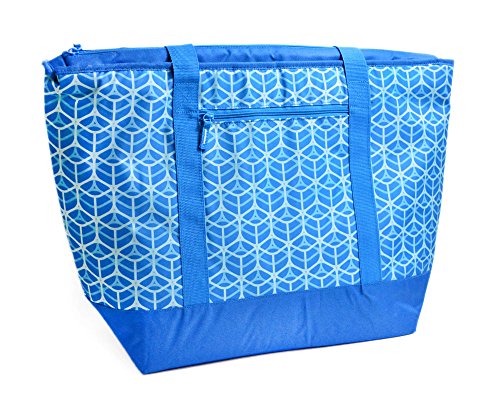 12 Gallon Insulated Mega Tote Bag for Transporting Frozen Food, Perishables and Hot Food - Blue Geometric Print