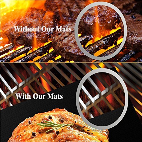 - 【IMPORTANT NOTE】Barbecue grill mats cannot be in contact with an open flame and need to be far enough above an open heat source that they aren’t exposed to temperatures above 500F. This is not a shortcoming of the product. Limit of 500F degrees as specified by the FDA for all nonstick cookware. Otherwise grill mats will be burned-out and can't be cleaned at higher temperatures (626F). Chef recommends barbecuing between 300F and 400F.