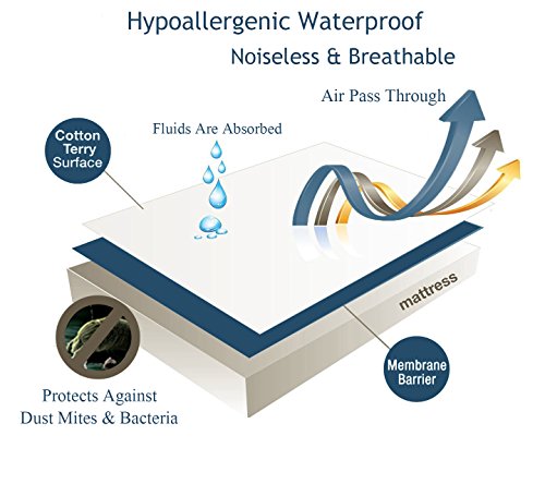 -. Feature : Protects Against Dust Mites, Fluids, Urine, Perspiration, Allergens And Bacteria (9-Year Warranty) / Hypoallergenic Cotton Terry Surface With Membrane Back Coating (Waterproof, Noiseless and Breathable) / Great For Those With Kids, Pets, Allergies, Asthma, Eczema Or Incontinence / Will Not Change The Feel of Your Mattress (Registered With The FDA As A Class 0 Medical Device) / Fitted Sheet Style Design - Twin Size Mattress Protector 39" x 75" - Fits up to 13" deep