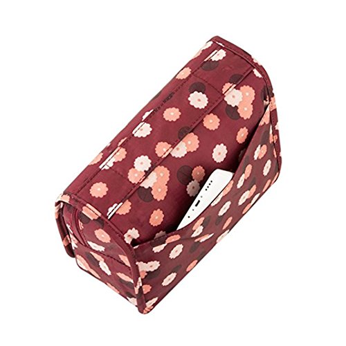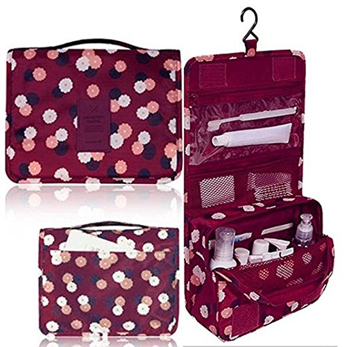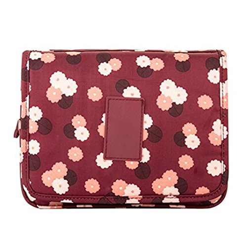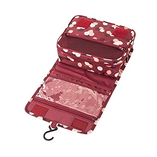 Cosmetic Bag Multifunction Portable Folding Travel Wash Toiletry Bags Pouch Case HuaForCity Makeup Tool Storage with Hook for Traveling/Sport/Outdoor/ Daily Use 20x25cm Red Flower
