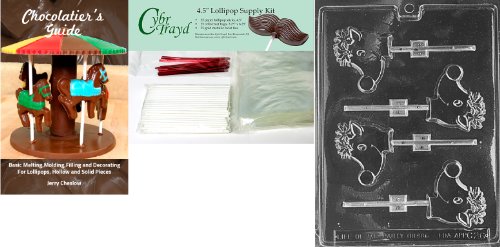 Cybrtrayd Small Reindeer Lolly Chocolate Mold with Chocolatier's Bundle of 25 Lollipop Sticks, 25 Cello Bags, 25 Red Twist Ties and Chocolatier's Guide