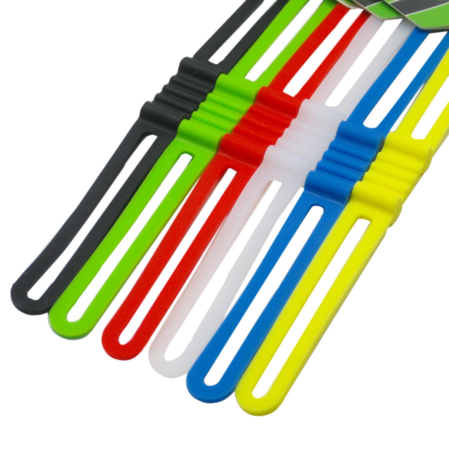 ** (Aideaz) Long Colorful Elastic Silicone Rubber Band Holder Strap 6pcs Set for Bicycle and Bonds etc. **