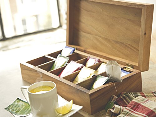 Studio : Ironwood Gourmet Publisher : Ironwood Gourmet Binding : Kitchen Product Description Keep your tea selections in line with this classic tea box made of beautiful Acacia. Acacia is a hardwood that is grown on all continents. This pod bearing tree is known for its rich, dark colors, that range from gold to chocolate brown, as well as its beautiful, contrasting patterns. This hinged tea box has ten compartments to store large assortment of your favorite teas. 0