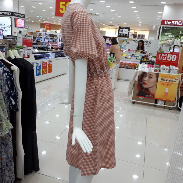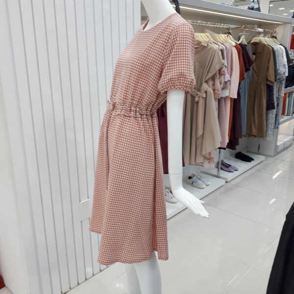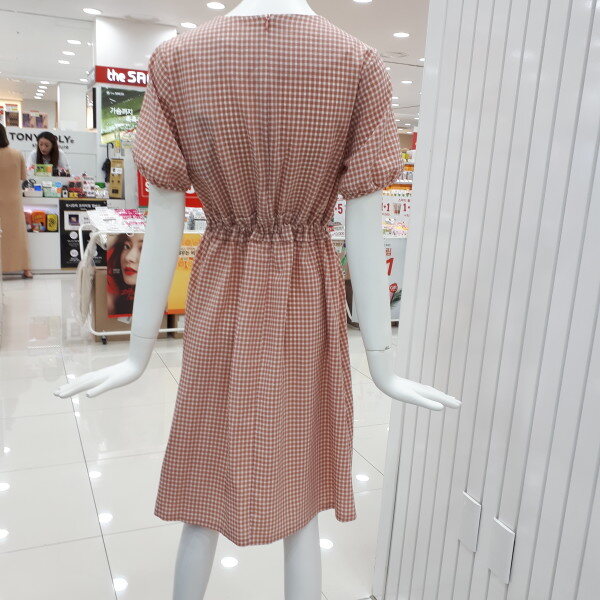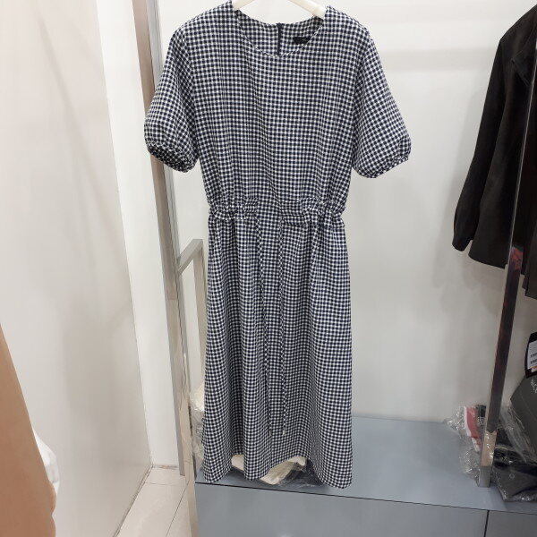 채크 퍼프소매 원피스 입니다시원한 원단에 허리라인이 들어간 예쁜 원피스입니다.