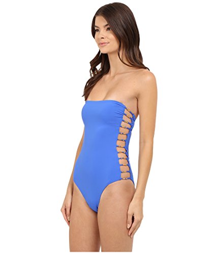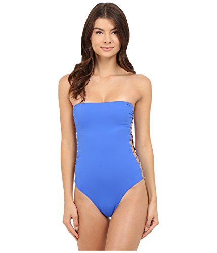 Studio : Trina Turk Women's Swimwear Publisher : Trina Turk Women's Swimwear Binding : Apparel Product Description Riviera bandeau one piece with strapping detail down each side. Pool beach Spa swimwear playa swimming vacation sun water sand gold fancy swim 0