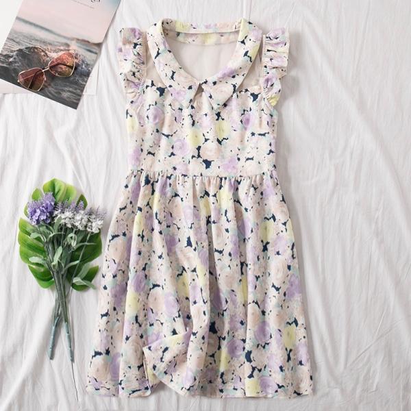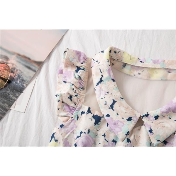 淡いカラーの花柄がキャッチーなワンピース。