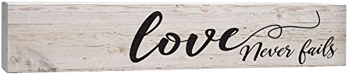 Love Never Fails Black Script Design White 4 x 17 Inch Solid Pine Wood Barnhouse Block Sign