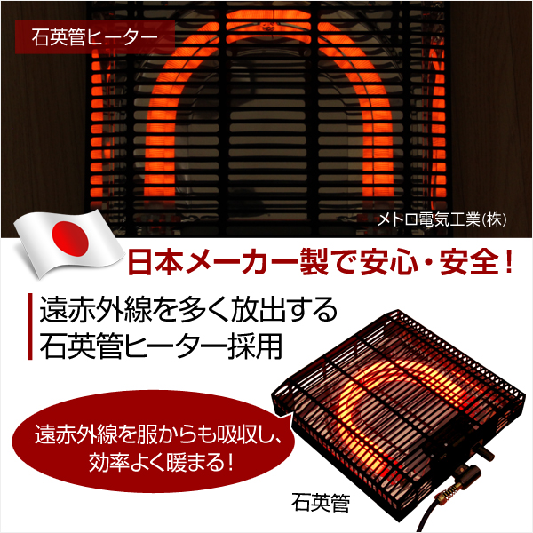 ●こたつヒーターは安心の日本メーカー製、1年間のメーカー保証書付き!