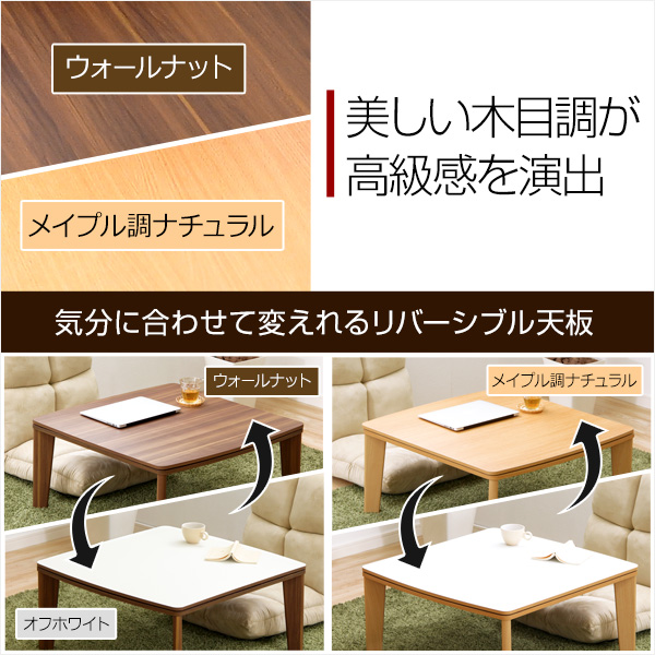 ●こたつテーブルは高級感がある木目調の表面&裏面はホワイトのリバーシブル仕様♪