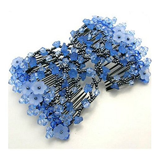 Lovef Petunia Multifunction Ez Magic Comb Stretchy Beaded Hair Comb in Small Beads Hairpin Plate Hair (Blue)