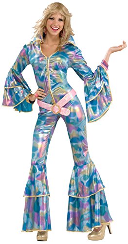 -. Binding : Apparel -. Brand : Forum Novelties -. Color : multi-colored -. Department : womens -. Feature : Wild colorful jumpsuit and belt / Tiered bell-bot and top with bell sleeves / Medium/large fits dress size 8 to 12, 36 to 38-inch chest, 27 to 30-inch waist, and 36 to 39-inch hips / Shoes available separately / By Forum Novelties, a leader in costumes and novelty products for more than 30 years -. Genre : Decades -. IsAdultProduct : 0 -. Label : Forum Novelties Costumes -. Manufacturer : Forum Novelties Costumes -. MPN : 62837 -. PackageQuantity : 1 -. PartNumber : 62837 -. ProductGroup : Apparel -. ProductTypeName : ADULT_COSTUME -. Publisher : Forum Novelties Costumes -. Studio : Forum Novelties Costumes -. Title : Forum Novelties Women's 70's Disco Fever Disco Mamma Costume