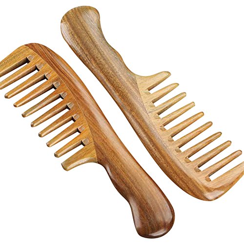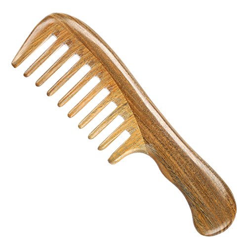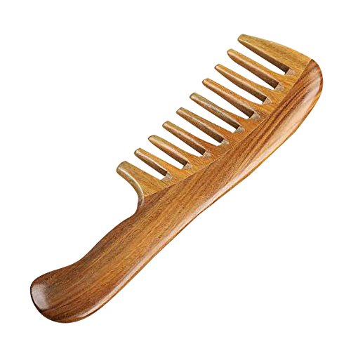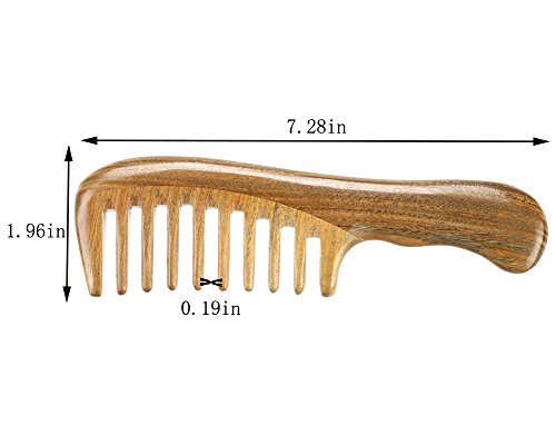 Toomett Wood Hair Comb - Green Sandalwood Handmade Wide Tooth Wooden Thinning Combs with Natural Aroma for Detangling Thick Curly Hair