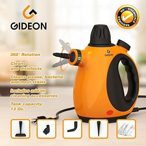 -. Title : Gideon Handheld Pressurized Portable Steam Cleaner and Sanitizer / Powerful Multi-purpose Steamer, Removes Grease, Dirt, Mold, Stains, etc. and Disinfects / Removes Wrinkles from Garments [UPGRADED]