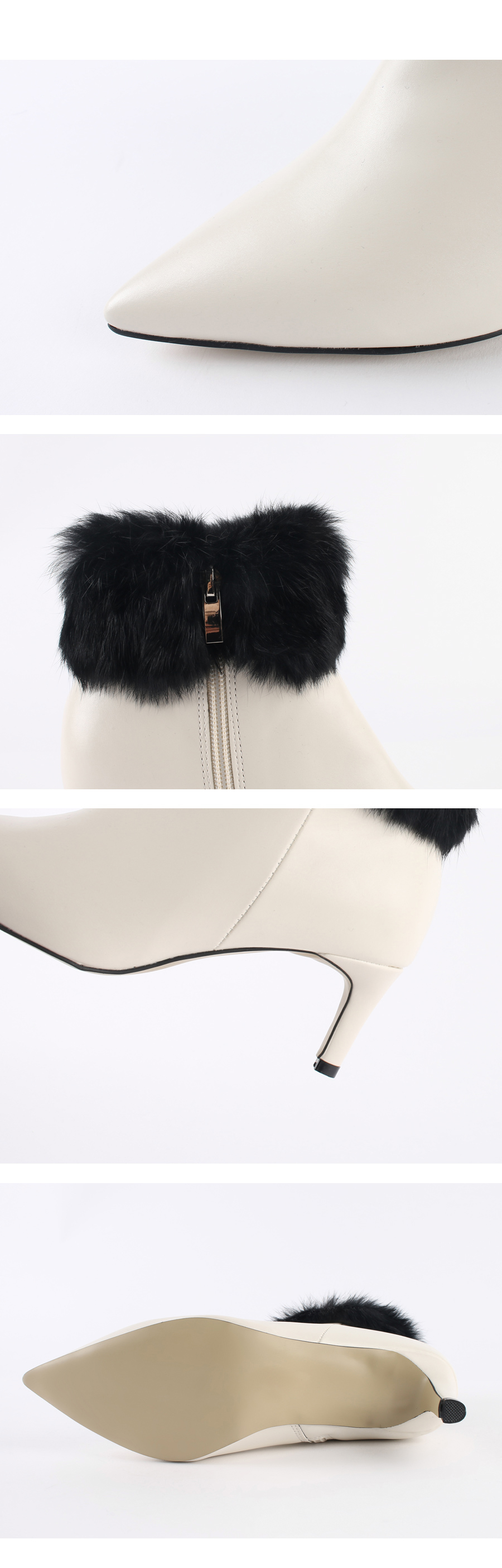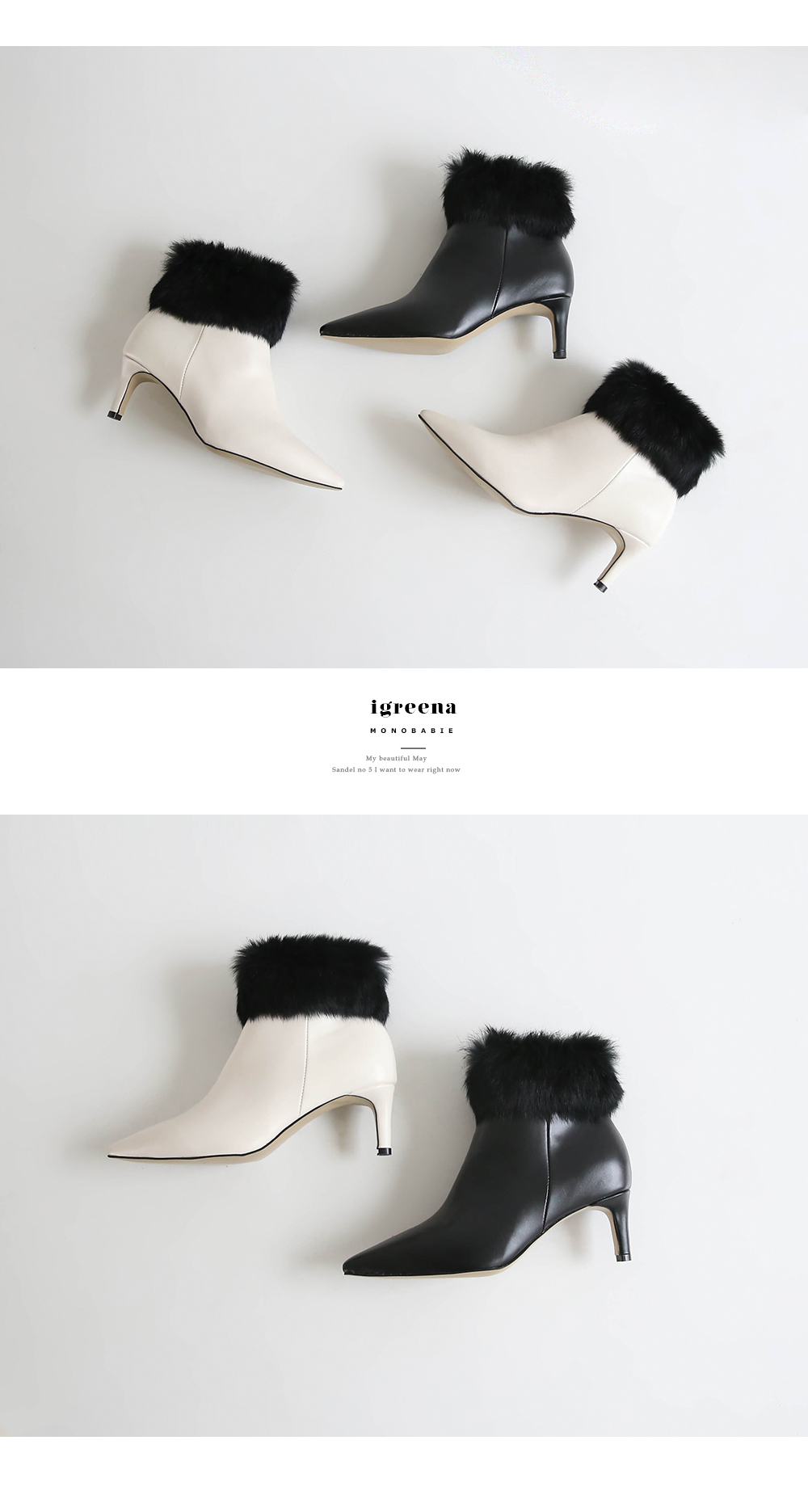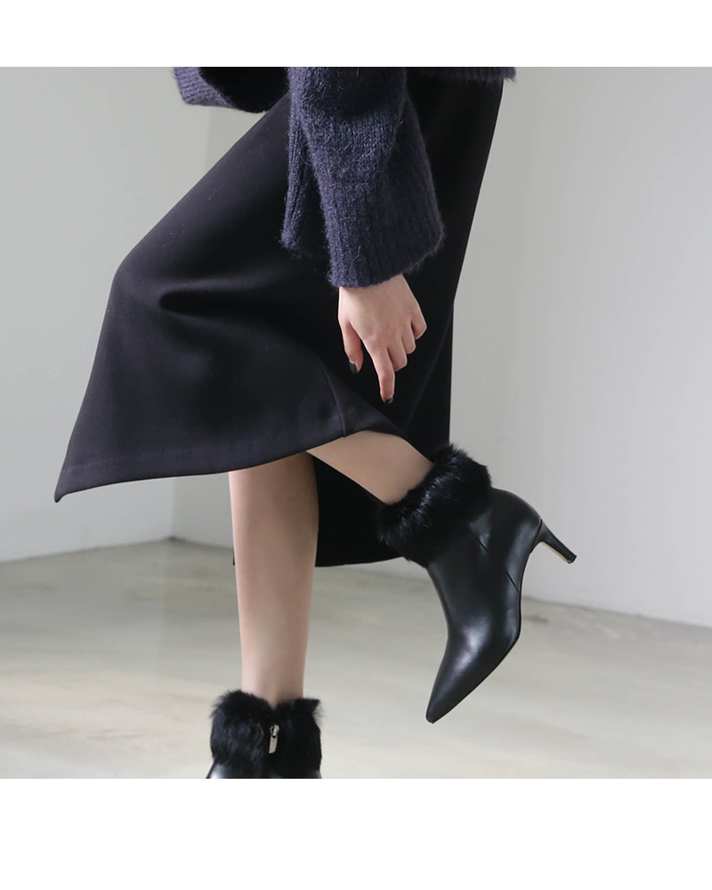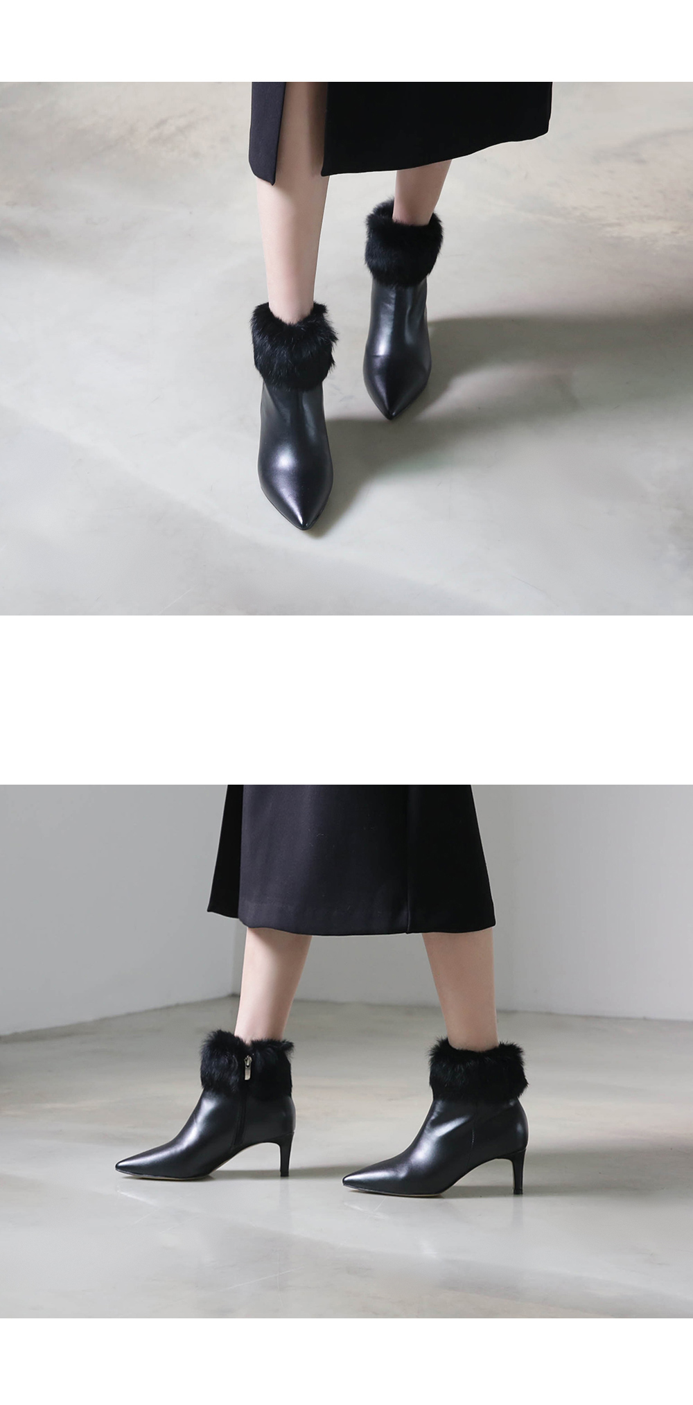 깔끔한 베이직한 라인에 퍼 장식을 더하여 고급진 무드를 선사하는 앵클부츠입니다.