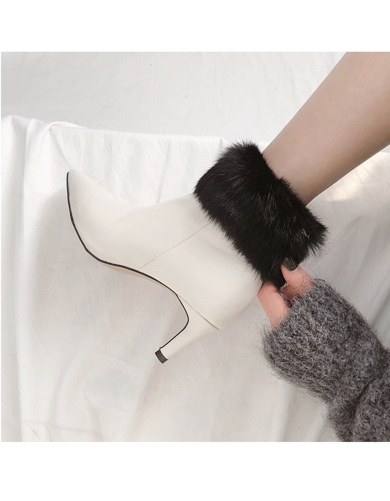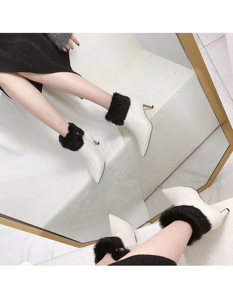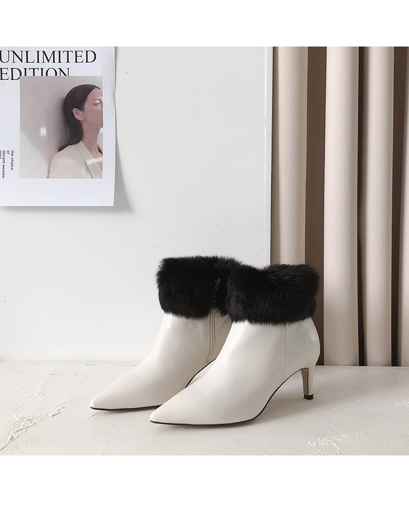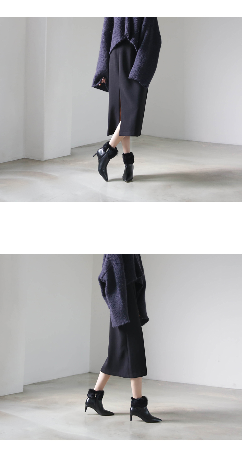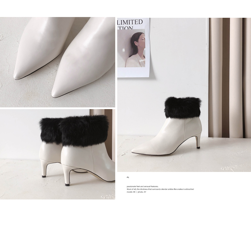 깔끔한 베이직한 라인에 퍼 장식을 더하여 고급진 무드를 선사하는 앵클부츠입니다.