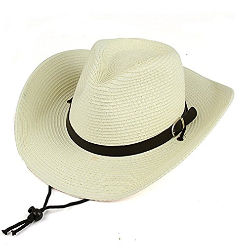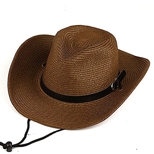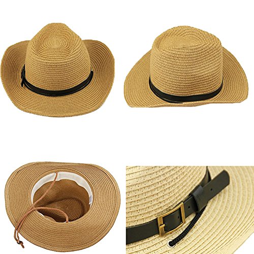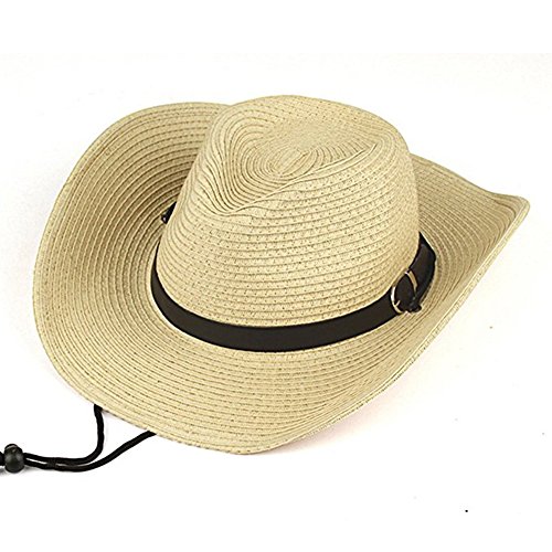 Binding : Apparel Product Description Stylish design of western cowboys.Beautiful and unique leather strap decoration, Adjustable chin drawstring. Ideal for spring and summer travel,Beach and other outdoor activities.