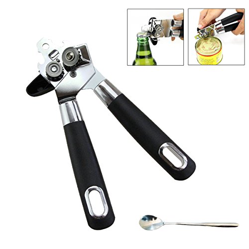 PERFECT GIFT - This side cutting safety can opener is quite simple to operate.The combination of the big knob, long ergonomic silicon handle, and sharp cutting wheel makes opening cans an effortless task, even for senior citizen with weak hands from arthritis and wrist problems. The opener comes with an FREE Spoon,this can opener makes a fantastic present for any occasion Such as Weddings, Christmas gifts,Black Friday,and Housewarming Parties.