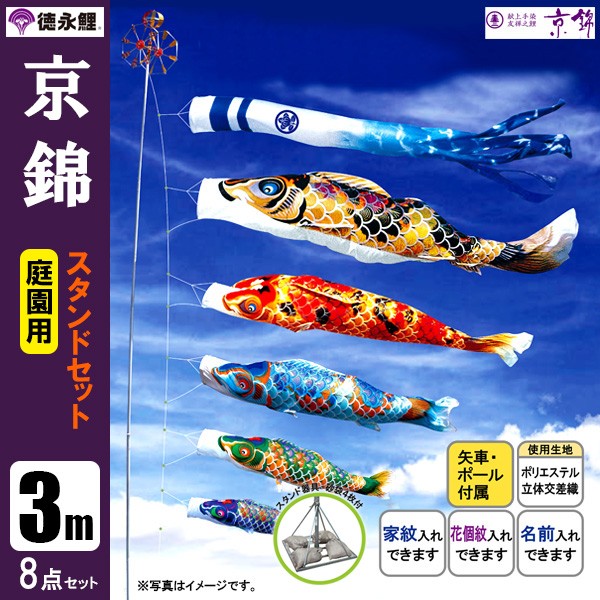 | 京錦 鯉 庭園用大型鯉のぼり スタンド砂袋式ポール付セット | 1.5m鯉3匹 | 2m鯉3匹 | 3m鯉3匹 3m鯉4匹 3m鯉5匹 | 4m鯉3匹 4m鯉4匹 4m鯉5匹 |