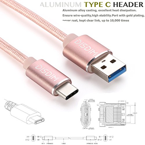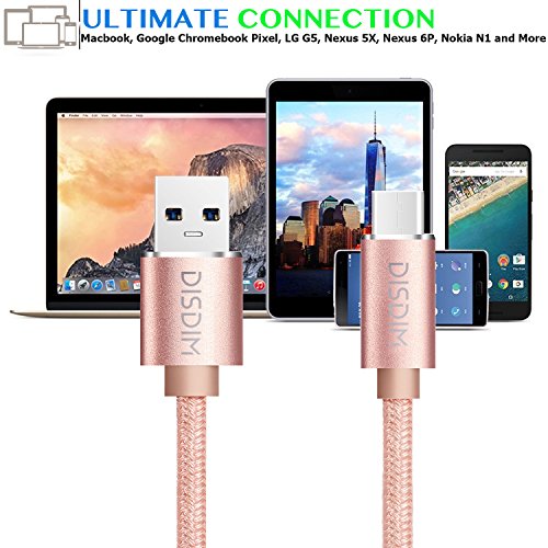 DISDIM Advantage Design:Type C header made by aluminum alloy CNC,Cable body made of high quality nylon material wrapped in copper wire.6ft USB 3.1 Type-C to USB-A,Fast Charger your New Macbook, Google Chromebook Pixel, LG G5, Nexus 5X, Nexus 6P, Nokia N1 and More.