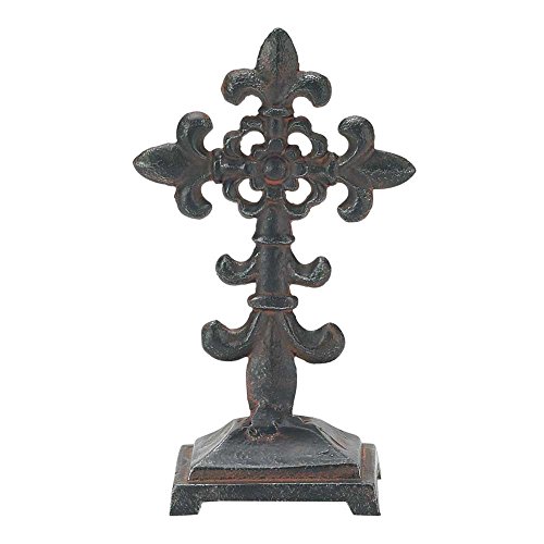 Fleur de Lis Antiqued Brown 8 Inch Cast Iron Tabletop Cross