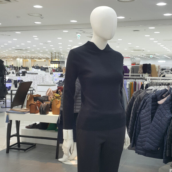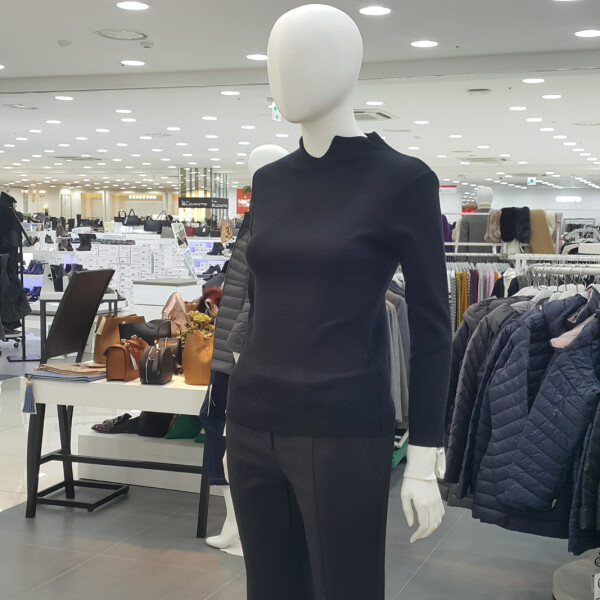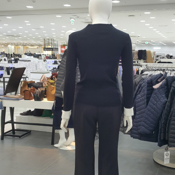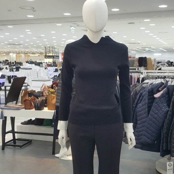 기본니트티셔츠에 목트임라인고 소매배색 진주장식이포인트되는 니트티셔츠입니다
