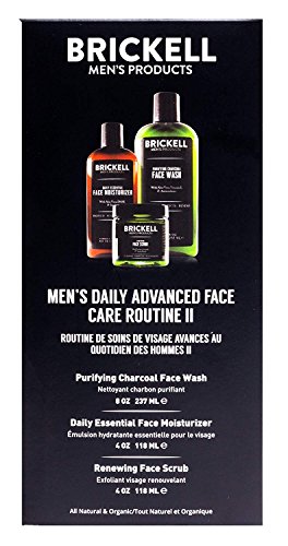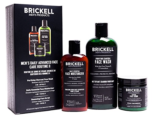 BrickellメンズデイリーアドバンストフェイスケアルーチンII - 活性炭フェイシャルクレンザー+フェイススクラブ+フェイスモイスチャライザーローション - ナチュラル&オーガニック