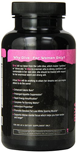 ReleaseDate : 2014-05-25 Studio : HIT Supplements Publisher : HIT Supplements Binding : Health and Beauty Product Description Diva taken from the Latin diva, which means goddess or divine one. A Diva is a woman who is strong, confident, and comfortable in her own skin; she should be treated with respect for her enormous talent and strong will. A true Diva will do anything to attain her dreams and can inspire others to do the same. Diva is a highly advanced fat-loss formula specifically designed for women that will help you to achieve peak energy levels and break through your fat loss plateau. Diva is hands down the best belly fat burner for women on the market because it gives you advanced appetite suppression, amplified energy levels, and an increased fat burning capability that will push your metabolism to a level you have never experienced before. By combining Diva with a healthy diet and exercise program, you will give your body the ability to trigger its maximum fat burning potential. With a potent formulation of powerful thermogenic ingredients, unique stimulant, metabolic and hormone support ingredients, Diva will turn your body into a calorie burning, fat destroying machine. 0