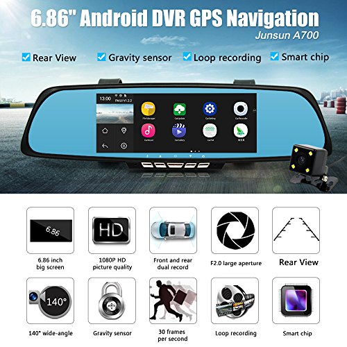 -. Title : junsun 6.86" Dual Lens Car GPS DVR Rearview Mirror Camera Full HD 1080P video Dash cam recorder