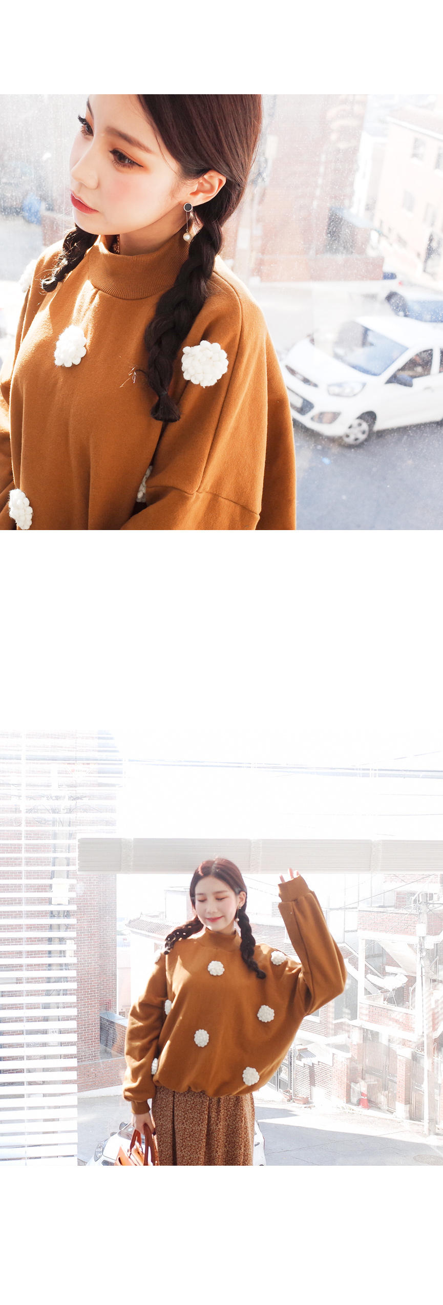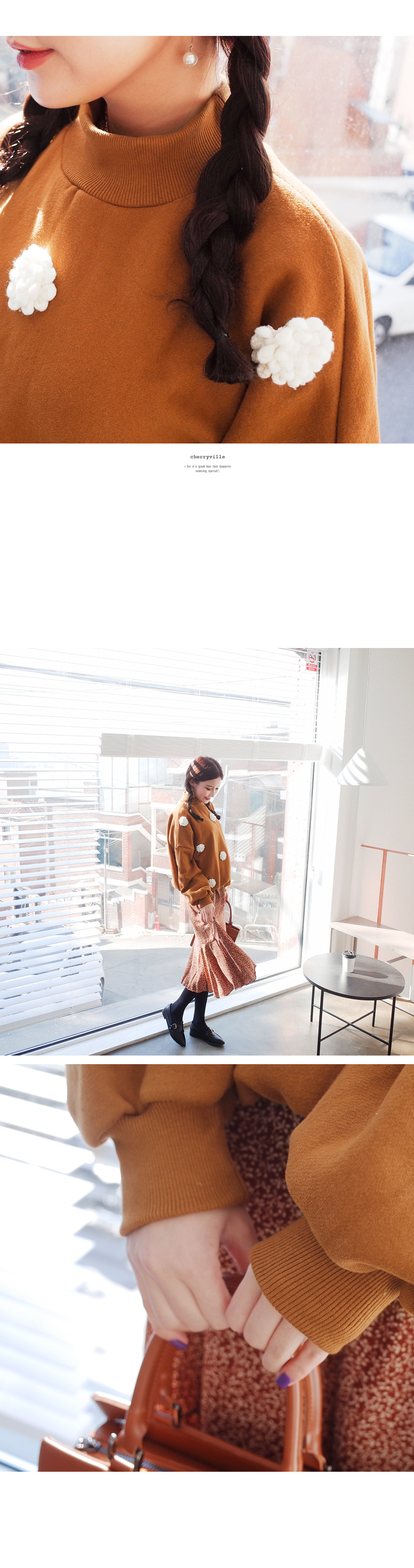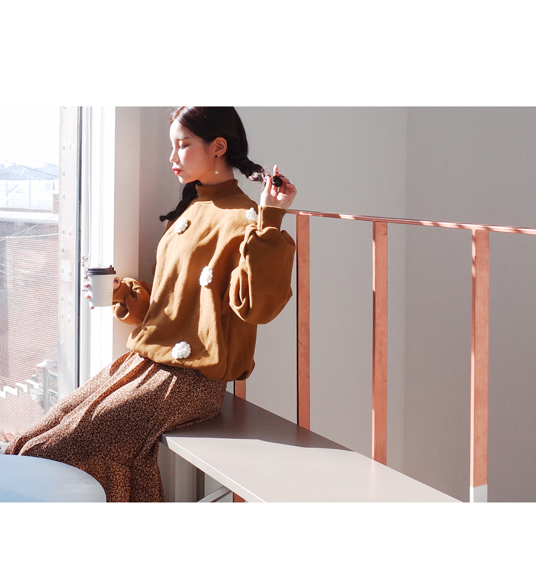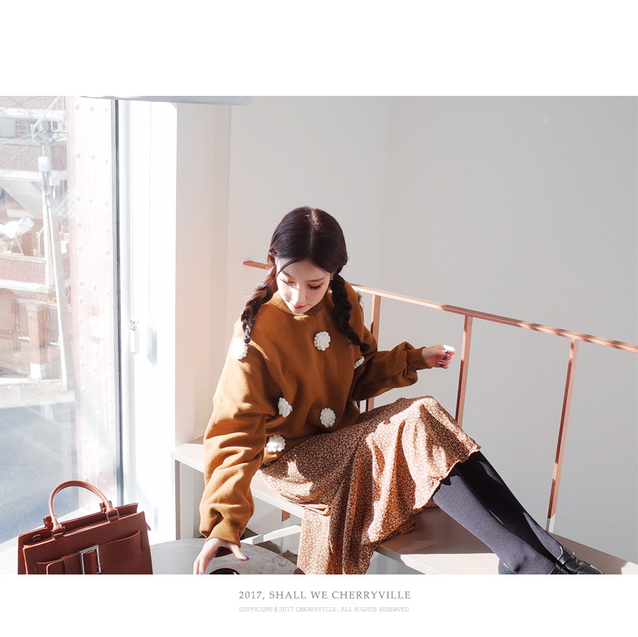입체적인 플라워 디테일이 눈에띄는 맨투맨입니다