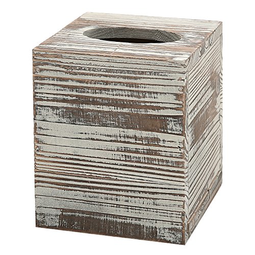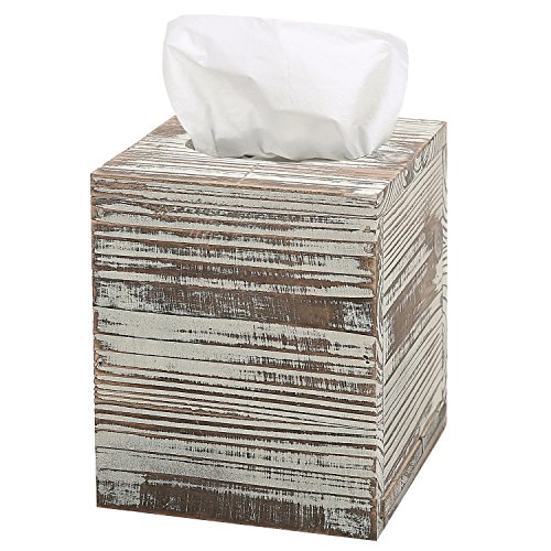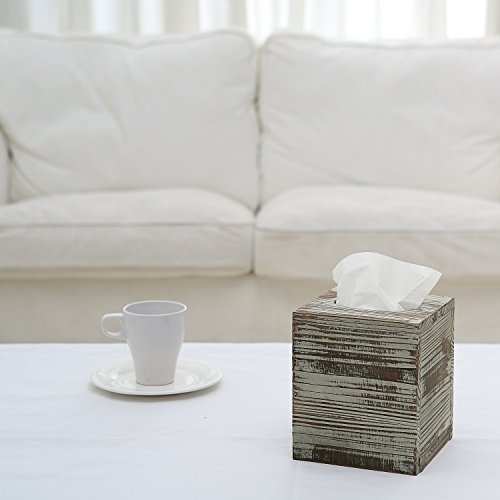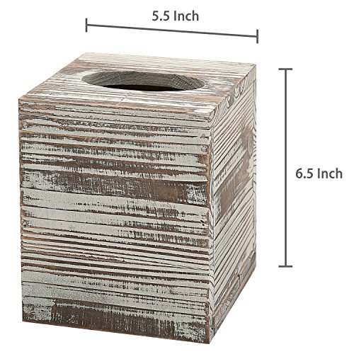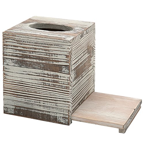 Rustic Torched Barnwood Brown Square Tissue Box Cover with Slide-Out Bottom Panel