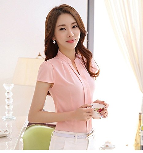 -. Title : ロイヤルパイン(Royal Pine) Vネック フロントタック パフ袖 シフォンブラウス サイド コンシールファスナー付き (M,ピンク)