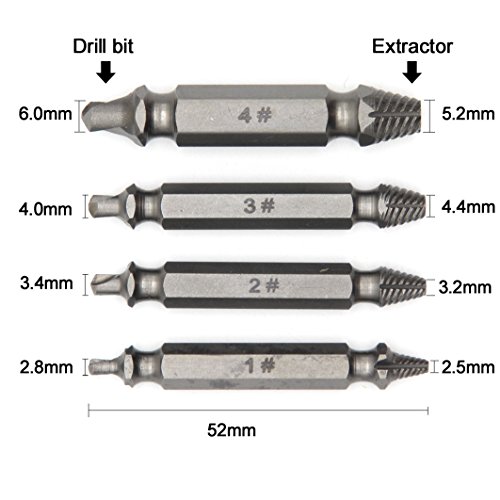 - The 4 piece screw extractor set works with any drill and any screw size or bolt! It works great for stripped, broken, stuck, or damaged screw removal