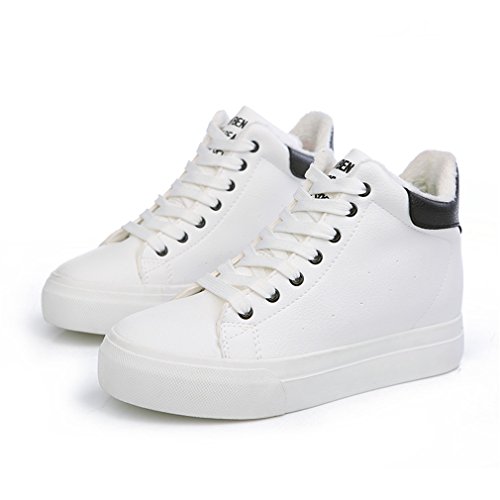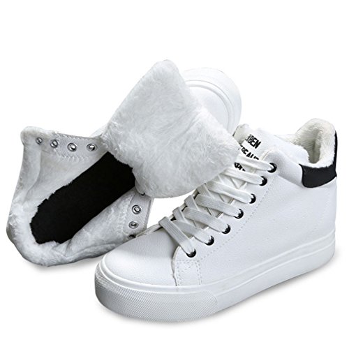 Studio : Slinny Publisher : Slinny Product Description Upper Material:PU Boot Height:Ankle Closure Type:Lace-Up Boot Type:Snow Boots Toe Shape:Round Toe Heel Height:Low (1cm-3cm) Heel Type:Height Increasing Season:Winter Insole Material:Rubber Pattern Type:Solid Outsole Material:Rubber With Platforms:Yes Platform Height:0-3cm is_handmade:Yes Lining Material:Short Plush Shaft Material:PU Fit:Fits larger than usual. Please check this store's sizing info Fashion Element:Cross-tied Department Name:Adult Item Type:Boots fashion element:cross straps, platform pattern:color block decoration shoe heel style:elevator lining:artificial short plush Color:Black White Shoe Width:Medium(B,M) Process:Vulcanized Heel Height:Med (1 3/4" to 2 3/4") Gender:Women Boot Type:Fashion Boots