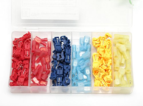 Ginsco 120 Pcs/60 Pairs Quick Splice Wire Terminals T-Tap Self-stripping with Nylon Fully Insulated Male Quick Disconnects Kit