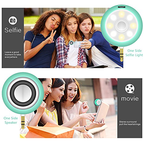 [Patent Innovation Design]---Exclusive innovation function, selfie light and speaker combo. Small, wireless, easily carry in your pocket or bag so you can enjoy using it everywhere. Fashionable 6 color appearance: Black, White, Green, Blue, Pink and Rose Gold. Only we have, you won’t find such great product from other place.