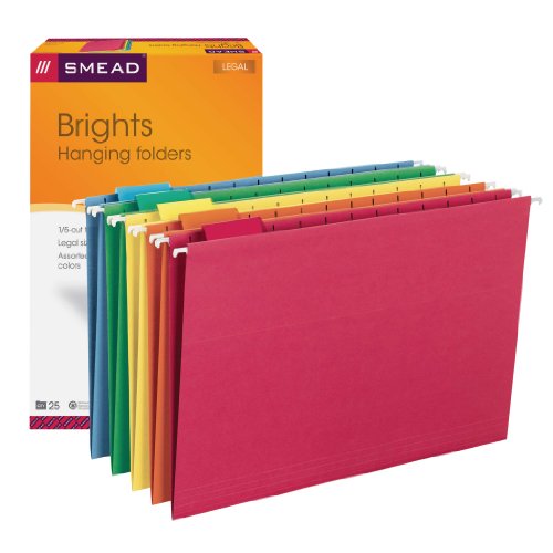 Smead Hanging File Folder with Tab, 1/5-Cut Adjustable Tab, Legal Size, Assorted Colors, 25 per Box (64159)