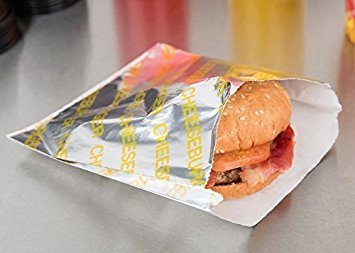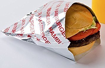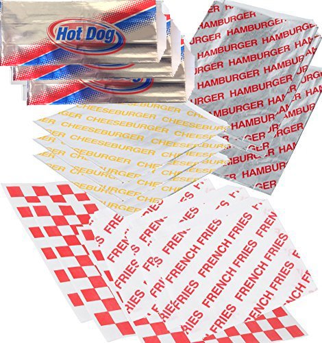 Burger Fries & Hot Dog Foil Wrap Bags - 50 French Fry Holders + 25 Hamburger & Cheeseburger Bags & 25 Hot Dog Foil Wraps 50 sandwich Printed Design outdoor picnic BBQ party pack sandwich papers